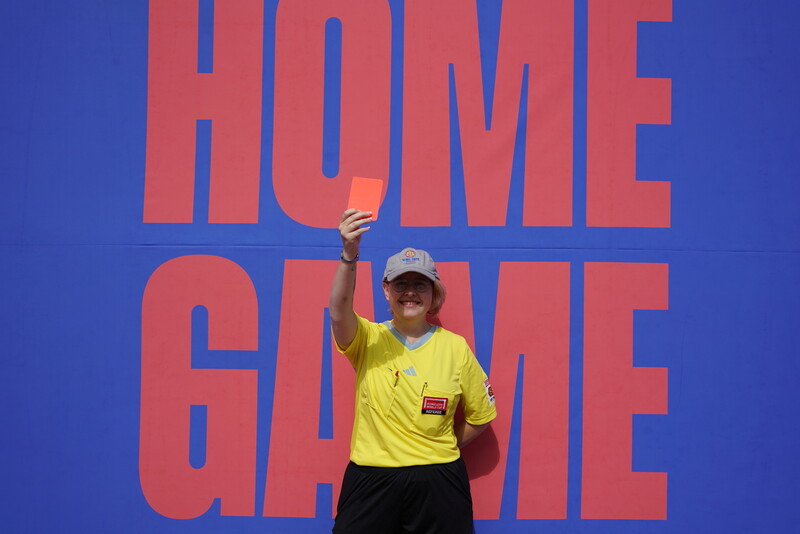 홈리스 월드컵 심판 세라 프로바인이 레드카드를 들어보이고 있다. 서울 2024 홈리스월드컵 조직위원회 제공